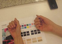 STEP 01 육안진단 STEP 02 피부조색 STEP 03 4계절 컬러 천을 이용한 진단 STEP 04 컬러추천